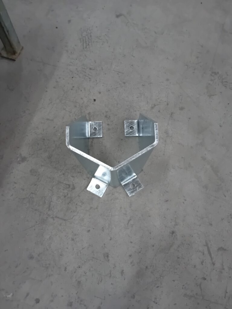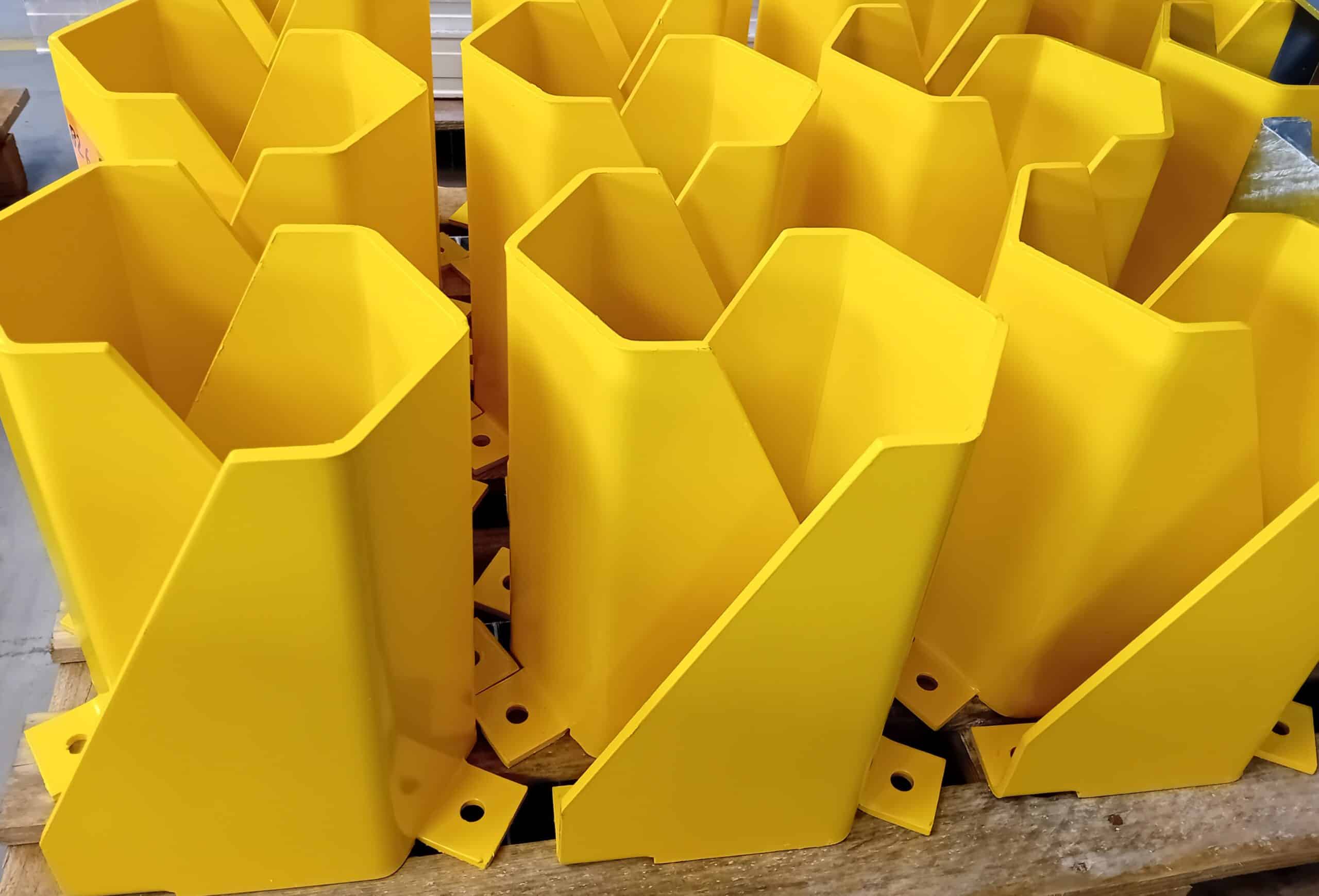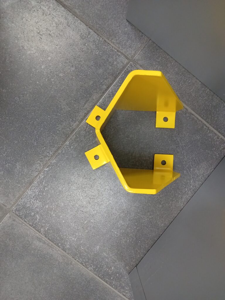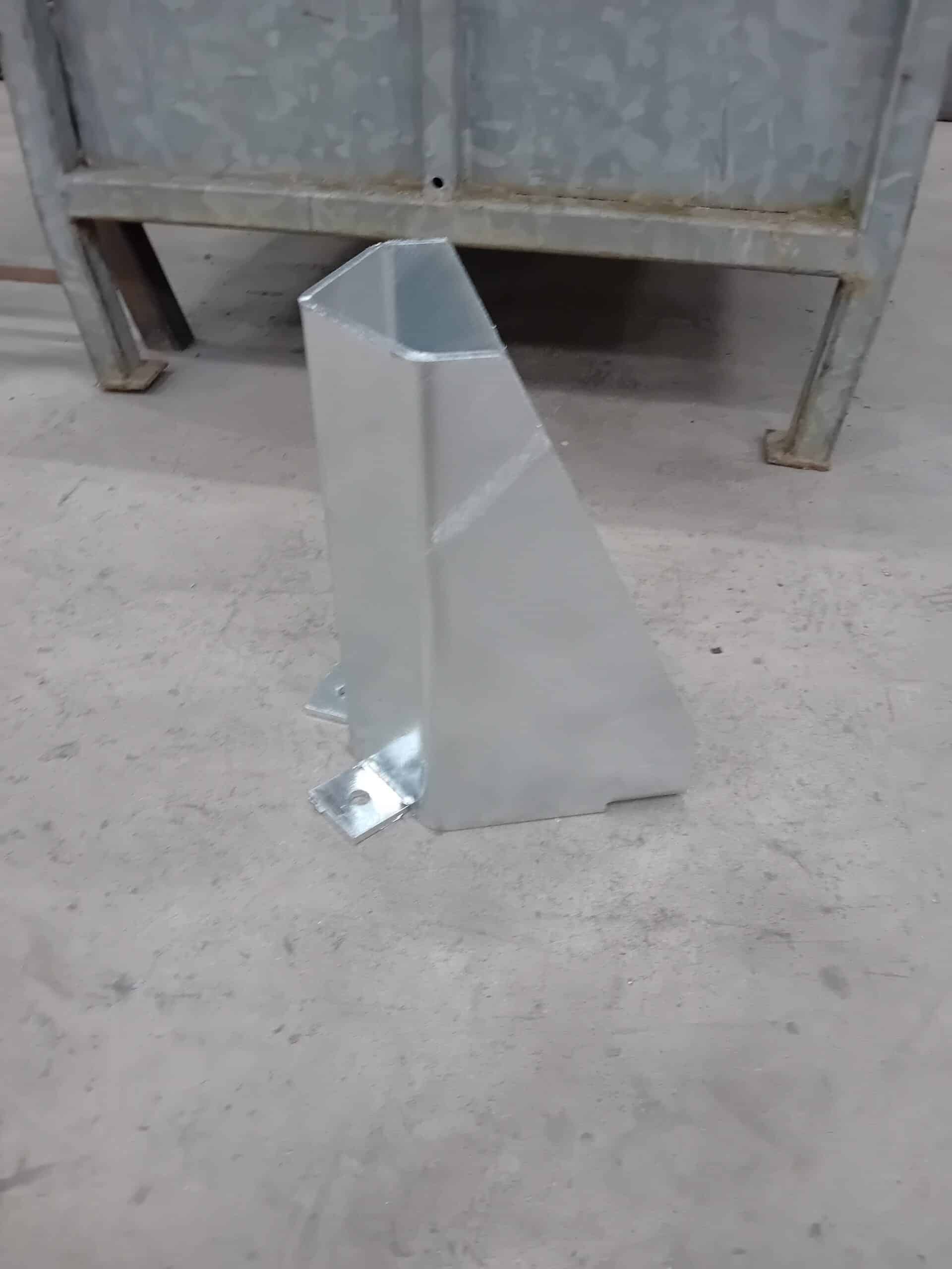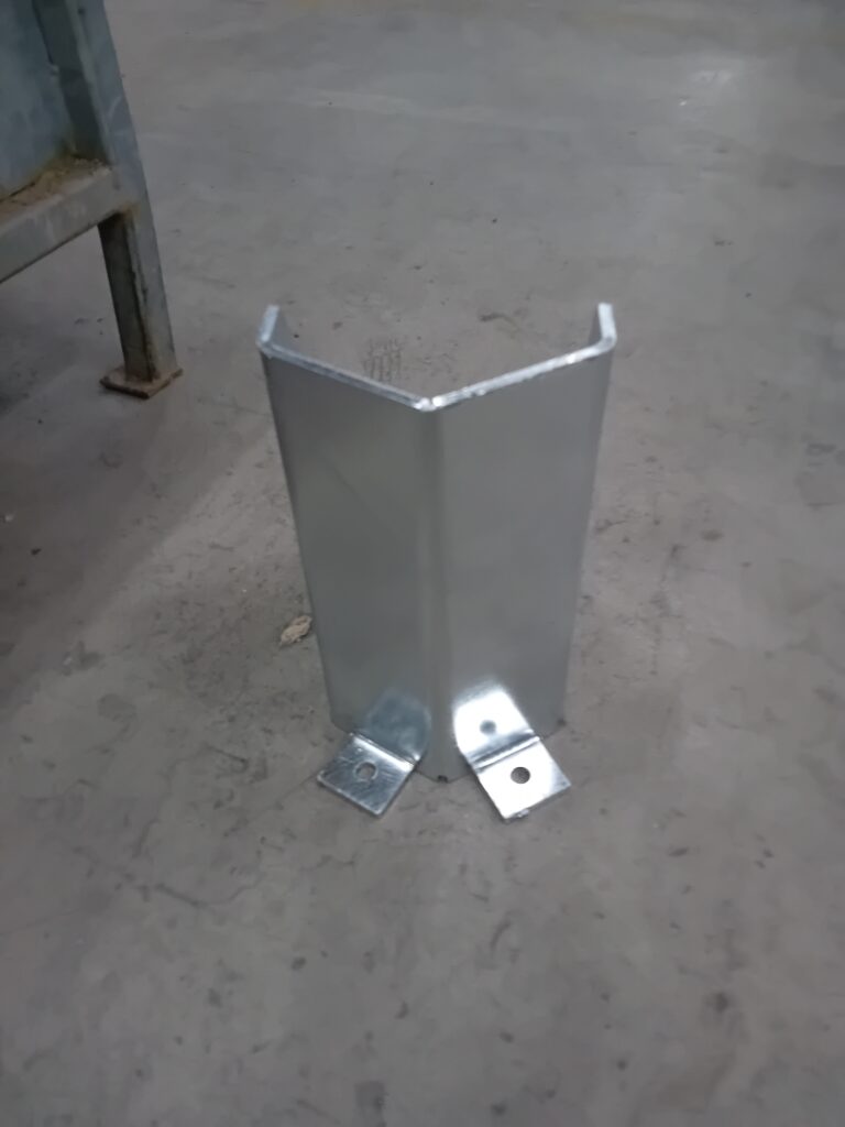 Fourniture seule d’une protection pour pied de rack en tôle 3 mm ou 6 mm pliée de dimensions 250 mm x 175 mm x 300 mm (largeur intérieure de 165 mm).