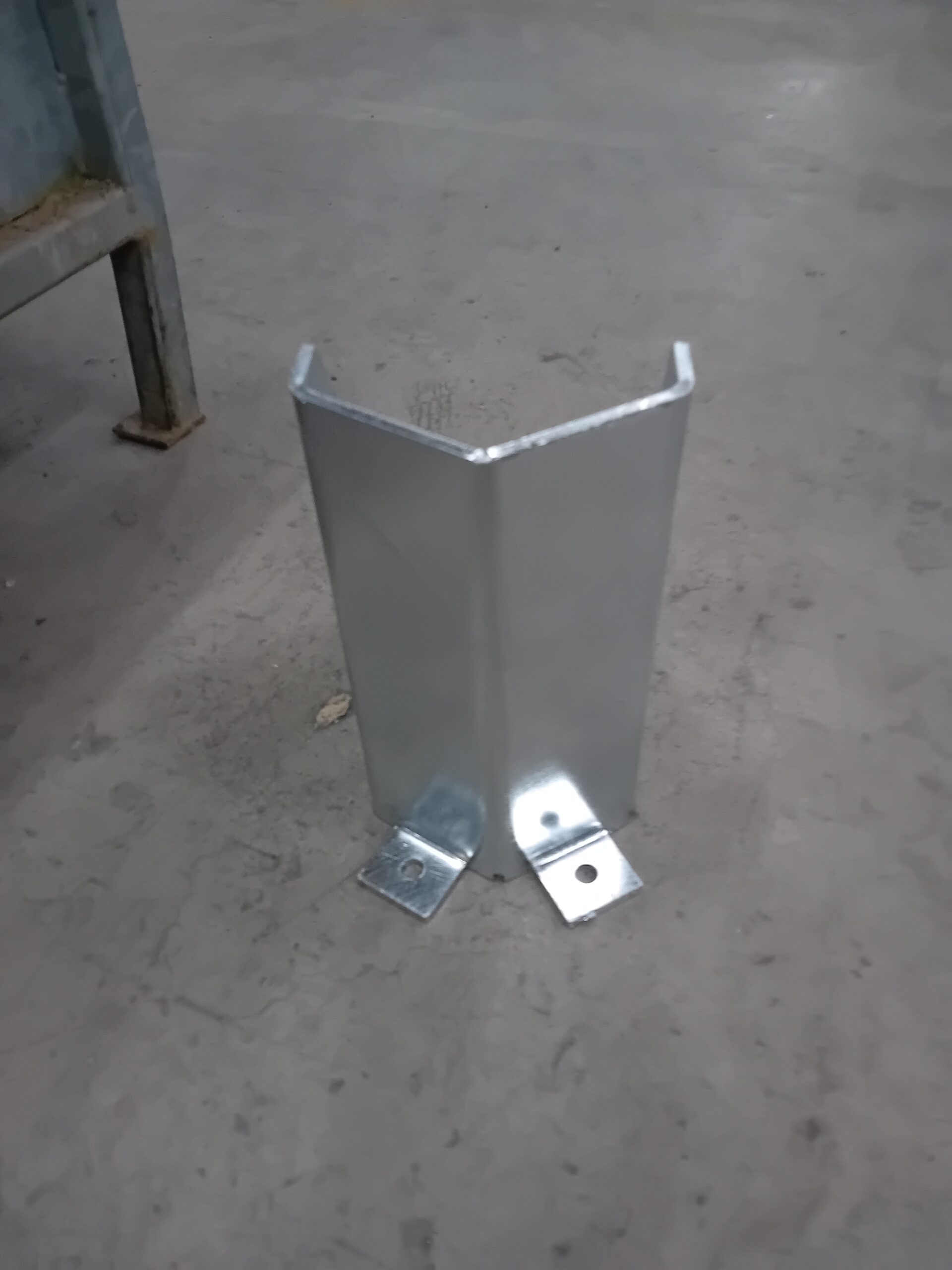 Fourniture seule d’une protection pour pied de rack en tôle 3 mm ou 6 mm pliée de dimensions 250 x 175 x 300 (largeur intérieure de 165).